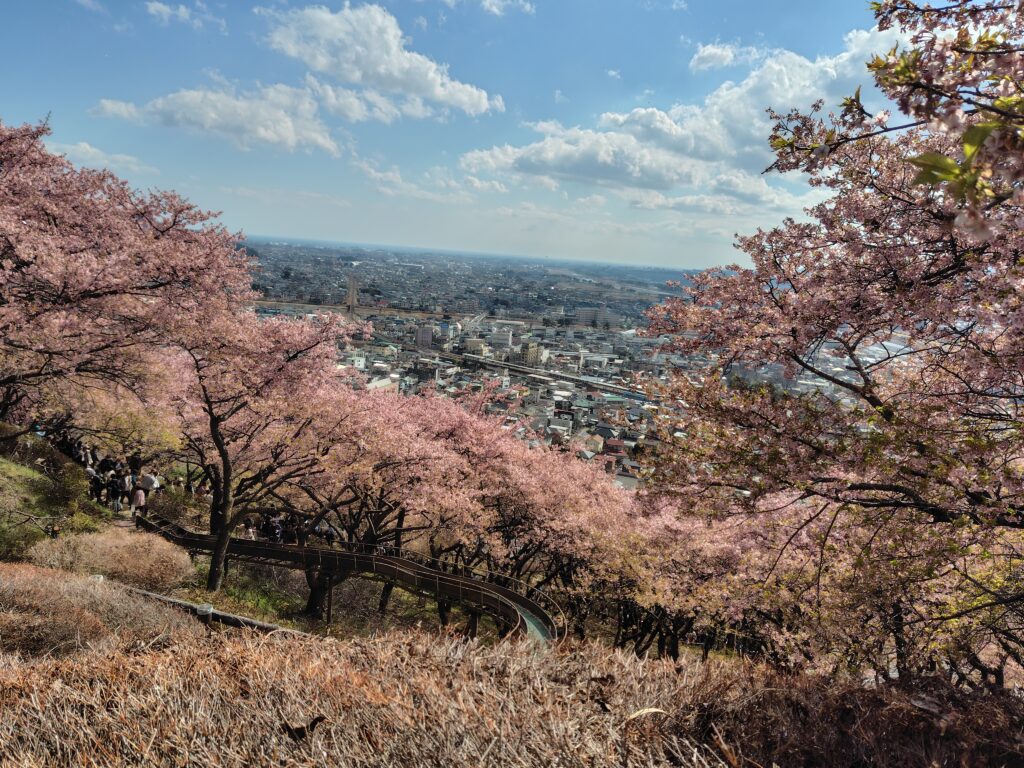 神奈川県松田町の西平畑公園からの景観と河津桜を見に電車で1時間強です!